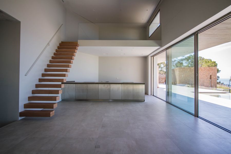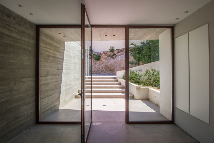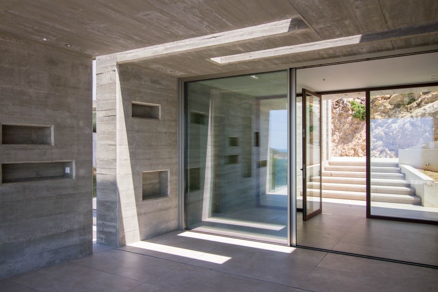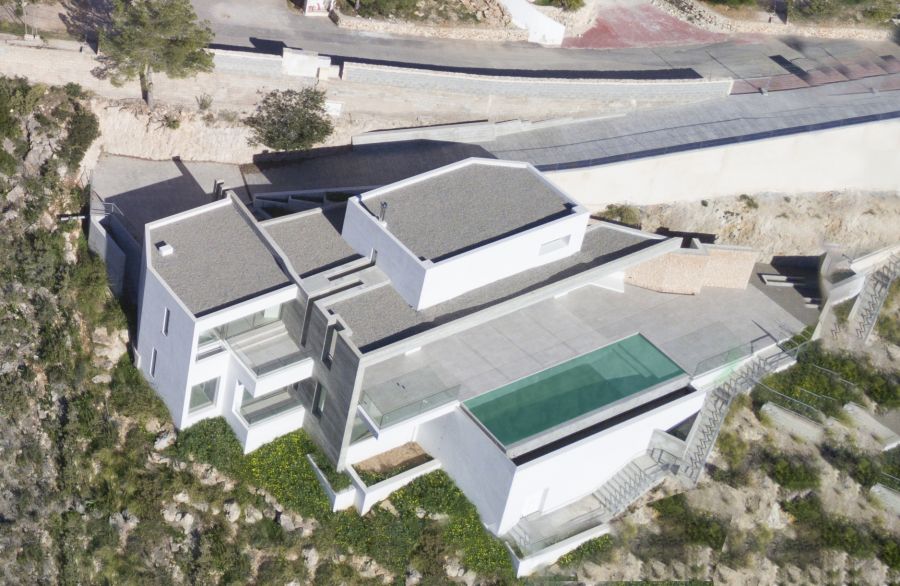 A sharp topography and a magnificent view are the starting points of the project. The walls of traditional construction finished in white are combined with concrete walls made in situ. We sculpted the ensemble to introduce light and emphasize changes in the material, creating shadows that multiply the nuances of the materials, all in order to create a worthy setting for the Mediterranean Sea.