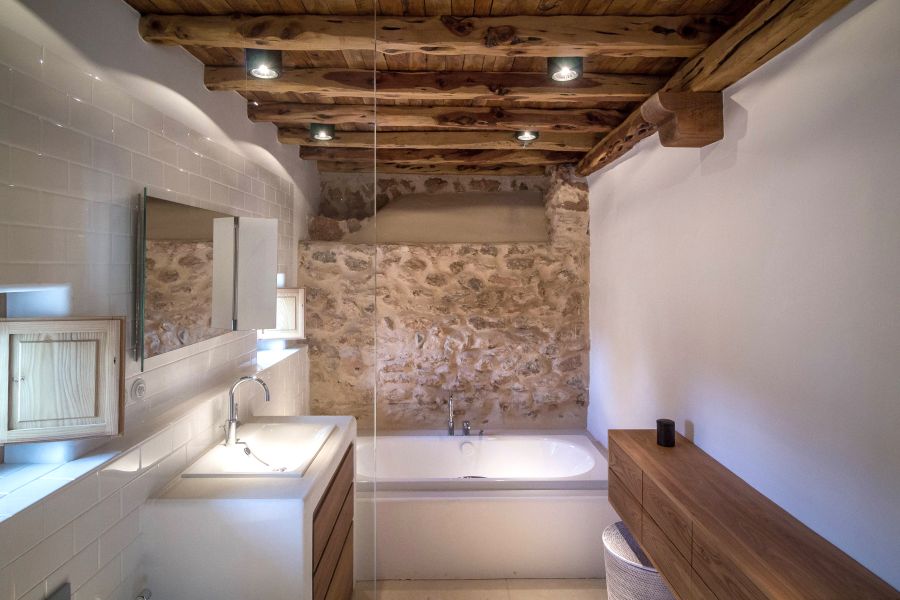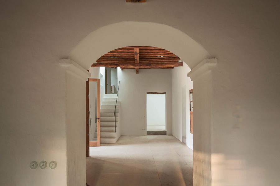 Rehabilitation of a farmhouse. This is a respectful rehabilitation respectful with the environment, which seeks to update in light tones its finishes, without losing the vernacular character. The details enhance extolling the materials, using limestone, carpentries of wood and plaster, and they are all sculpted with the passage of time.