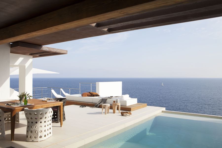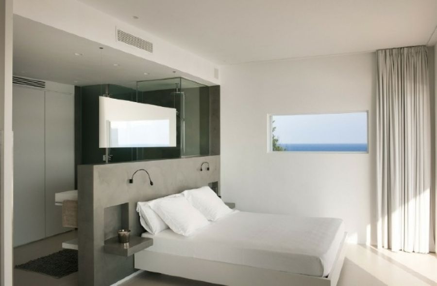 From the union of two duplex, it has been designed a spacious house with huge openings to the Mediterranean Sea. Corten steel and white volumes are combined to create a pure and unified image.