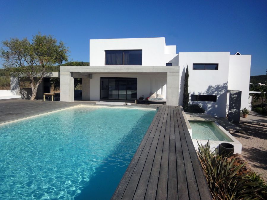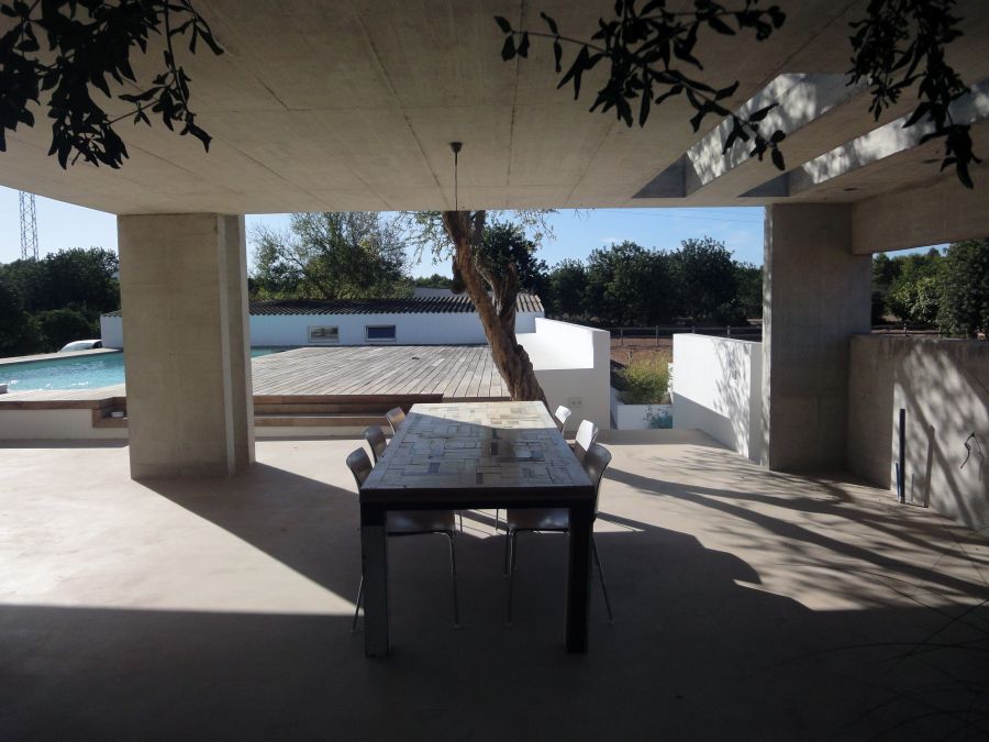 Renovation and extension an original house of Ibiza. The house is extended with two concrete porches which open the views to the ancient water deposit, which is now turned into a swimming pool. The project searches purity, using materials like sandstone, minimal steel carpentry, concrete and teak deck.