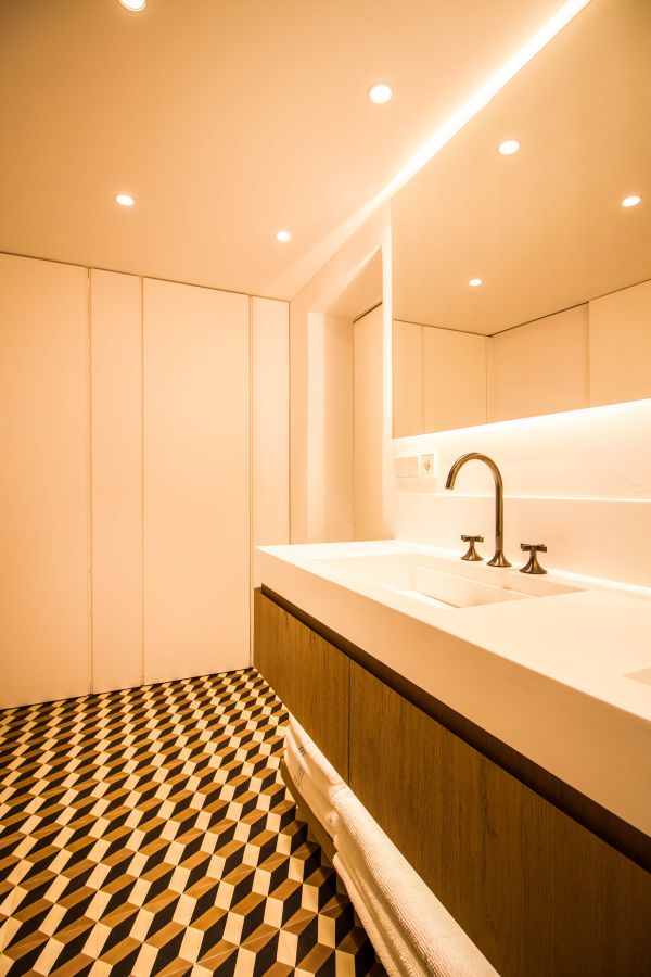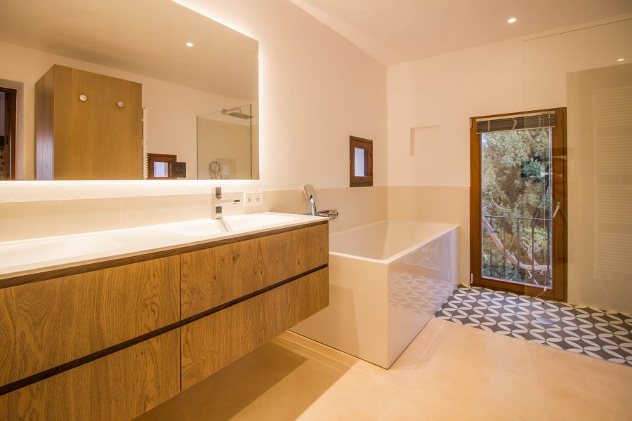 Reform of a traditional house that seeks the essence of the traditional Ibiza house, looking for sober, simple lines and the purity of the materials while respecting the morphology of the house. Mortex covers the entire floor of the house giving a unique interior continuity.