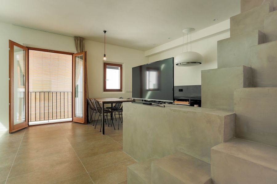Renovation of a three-story house in the heart of Ibiza's old town. The ground floor houses a public establishment, while the two upper levels contain two independent apartments. The top floor also features access to a private terrace with direct views of the Ibizan harbor. The work was carried out with respect for the essence of the original structure, achieving a balance between tradition and modernity, reflected in the contrast between exposed stone masonry walls and innovative finishes. On the ground floor, an ancient Punic cistern was uncovered and restored, now walkable and seamlessly integrated into the design.