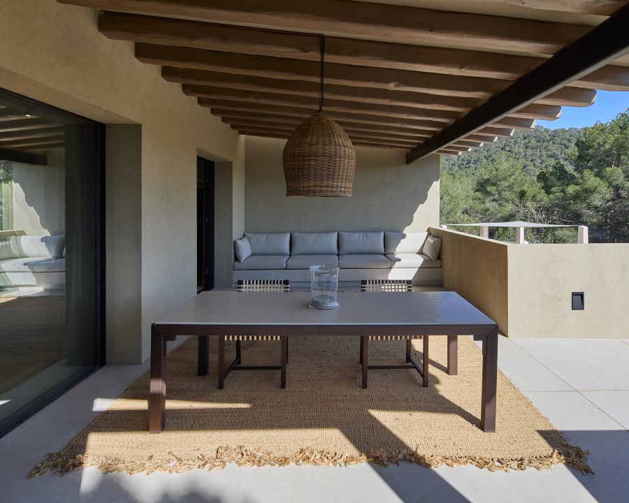 Reforma de una vivienda tradicional ibicenca, donde la arquitectura mediterránea se reinterpreta con sensibilidad. Fachadas en tonos taupe se funden con el paisaje rural, respetando el entorno y realzando su esencia natural.